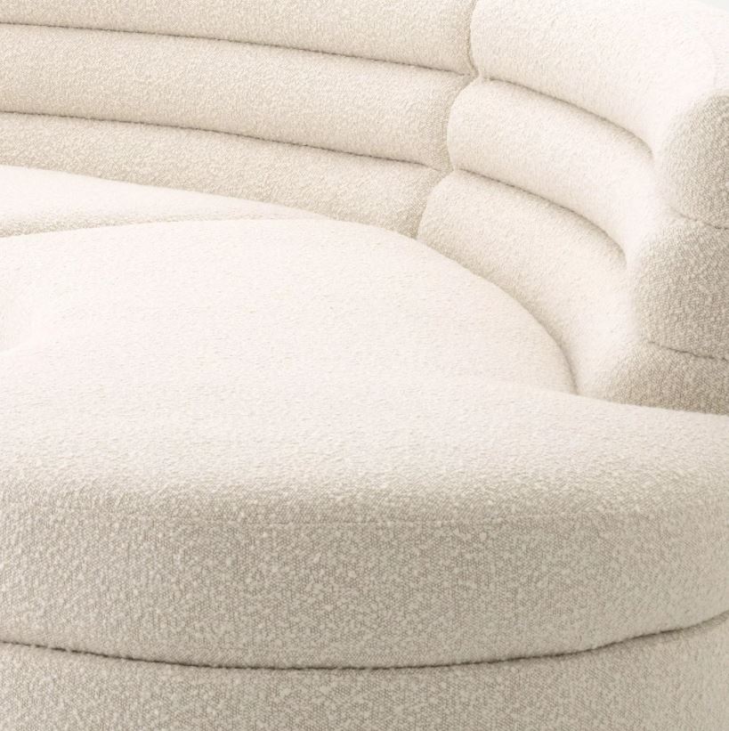 Ylellinen bouclé-verhoilu ja kestävä rakenne
