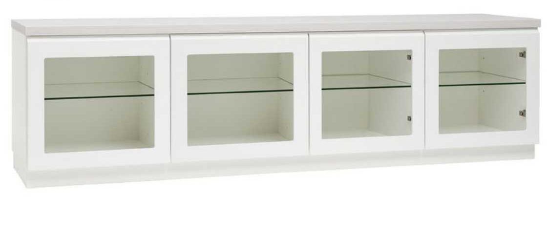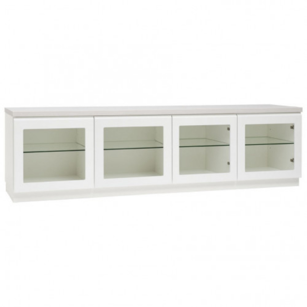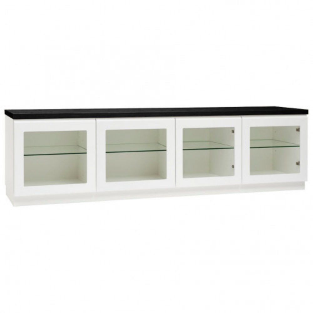 Neljä lasiovellista kaappia tuovat keveyttä ja eleganssia, ja niiden korkeussäädettävät lasihyllyt tarjoavat runsaasti joustavaa säilytystilaa. Push to open -mekanismi ja hidastavat kiskot tekevät käytöstä sulavaa, hiljaista ja miellyttävää, korostaen kalusteen modernia, vetimetöntä ilmettä.