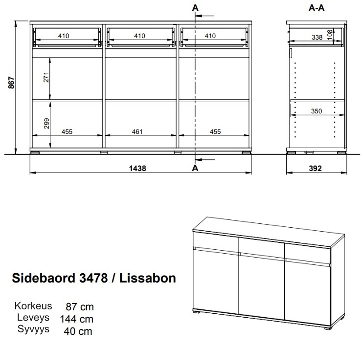 | 144 cm | 40 cm | 88 cm | cm | cm | cm | cm | cm | cm | cm | cm | cm | cm | cm | cm | cm | cm | cm | cm | cm | cm | cm | cm | cm | cm | cm | cm | cm | ABS reunat, Kalustelevy, Melamiinihartsipinoite | Pyökki | cm | Korkeussäädettävät hyllyt, Laatikoissa itsestään sulkeutuva mekanismi | Saatavana kasattuna - kasaus tilataan kassalla, Tilaustuote | Toimitus osina | 55.34 kg | Saksa | cm | cm | cm |