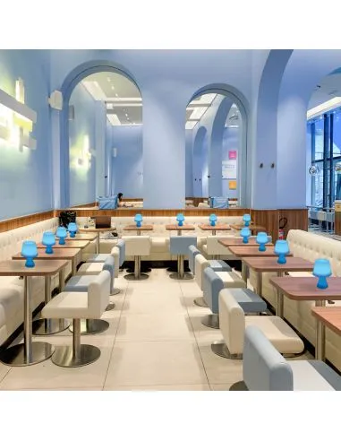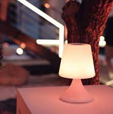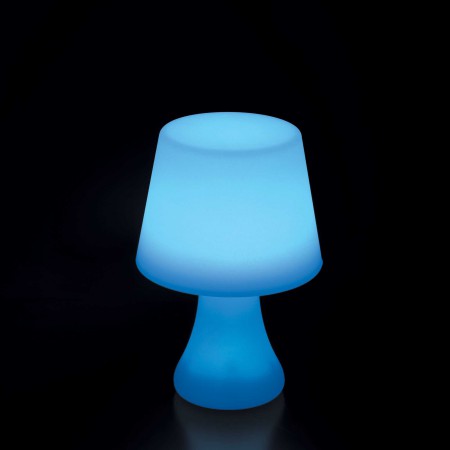 Kestävällä mattamuovirungolla. Valaisin ladataan ja sen jälkeen sen voi sijoittaa sisälle tai ulos. Voit vaihtaa valaisimen valon väriä. Design Italia.