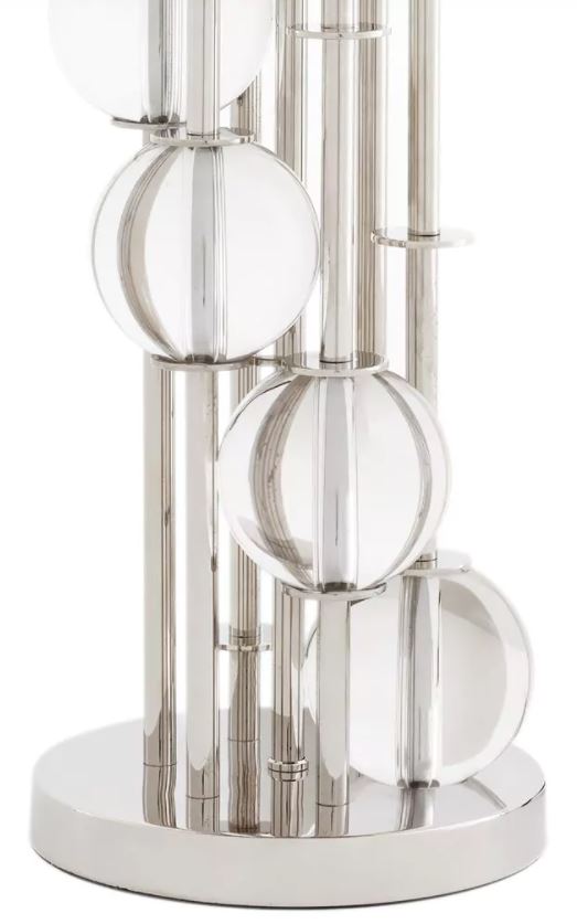 Lorenzo-pöytävalaisin yhdistää kuusi kirkasta kristallilasipalloa veistokselliseen teräsrunkoon, luoden ylellisen ja modernin kokonaisuuden, joka toimii vaikuttavana katseenvangitsijana missä tahansa huoneessa. Hopea- ja kultavaihtoehdot mahdollistavat täydellisen sävyn valitsemisen omaan sisustustyyliisi.