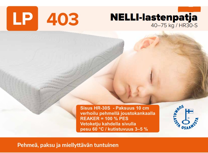 LP101 vaahtomuovipatja tarjoaa täydellisen tuen ja mukavuuden nuorille ja kevyille nukkujille. Sen pehmeä EP-30-vaahdosta valmistettu sisus on hengittävä, allergiaystävällinen ja turvallinen vaihtoehto myös herkille. Lp101 patja takaa miellyttävän ja rauhallisen unen joka yö.