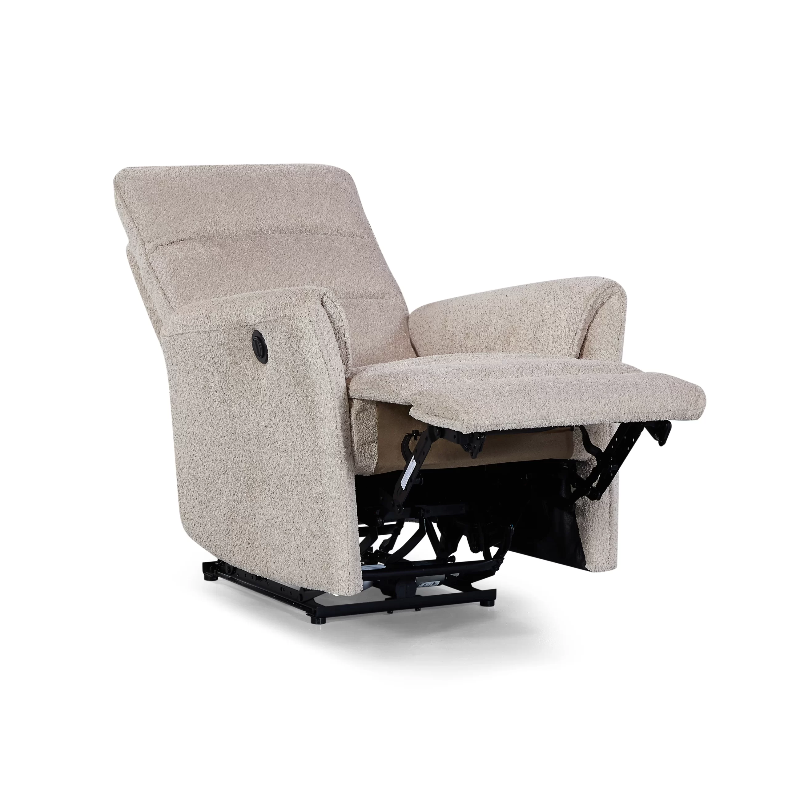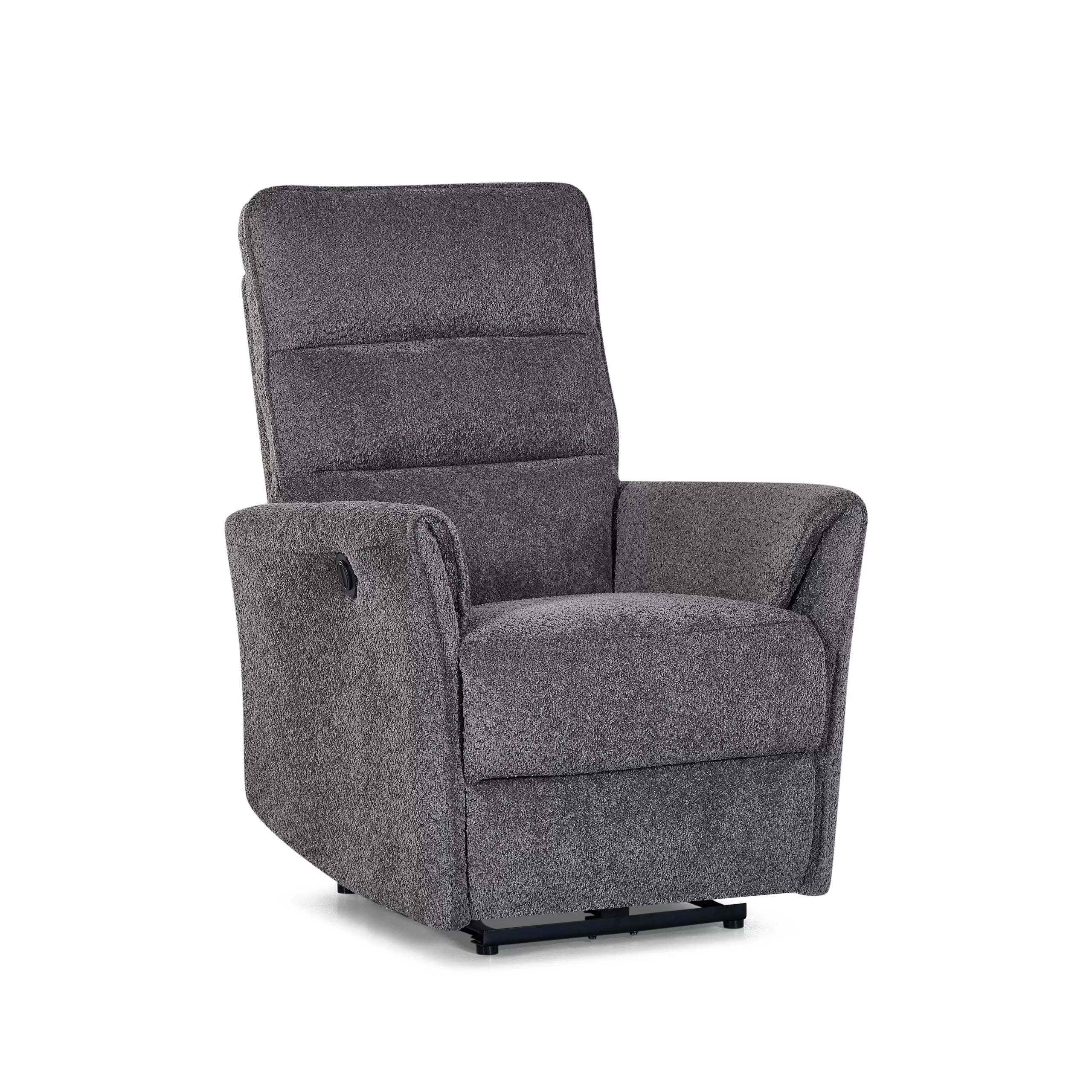 Sähköinen recliner-mekanismi kallistaa selkänojan ja nostaa jalkatuen napin painalluksella, tarjoten pehmeän ja sulavan siirtymän lepoasentoon. Ergonominen muotoilu tukee selkää ja mahdollistaa pitkätkin lepohetket täydellisessä asennossa.