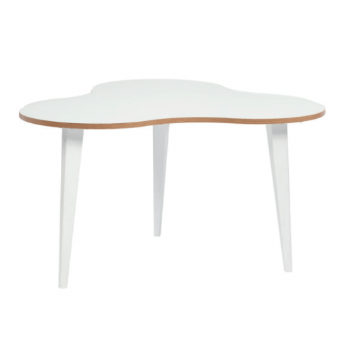 Pöydän 16 mm kalustelevystä valmistettu kansi ja valkoiset massiivipuiset jalat takaavat erinomaisen kestävyyden ja tukevuuden. Materiaalien huolellinen valinta ja viimeistely varmistavat, että pöytä säilyttää kauneutensa ja käyttöominaisuutensa vuodesta toiseen.