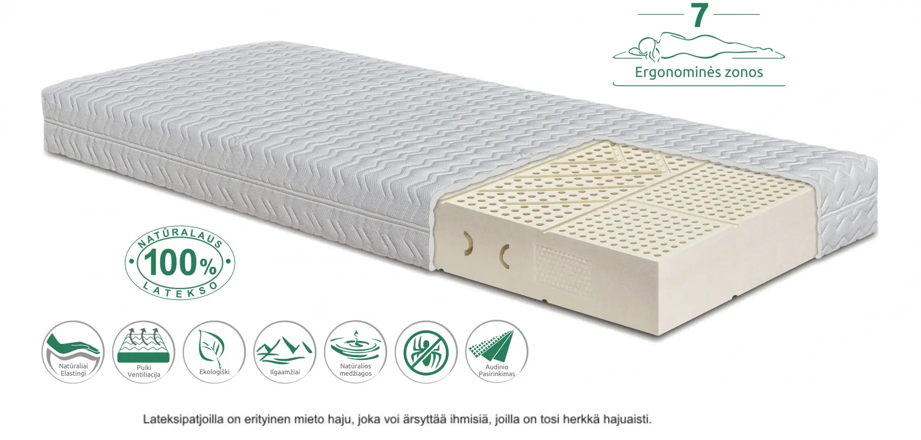 100% Luonnonkumi 7 Vyöhykkeen patja 90×200 cm