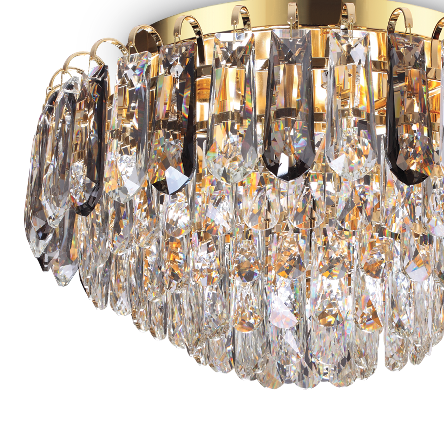 Magnolia PL7 kristalliplafondi on elegantti ja näyttävä kattovalaisin, joka tuo tilaan ripauksen luksusta ja arvokkuutta. Metallirunko yhdistettynä huolellisesti viimeisteltyihin kristallielementteihin luo säihkyvän kokonaisuuden, joka heijastaa valoa kauniisti koko huoneeseen.