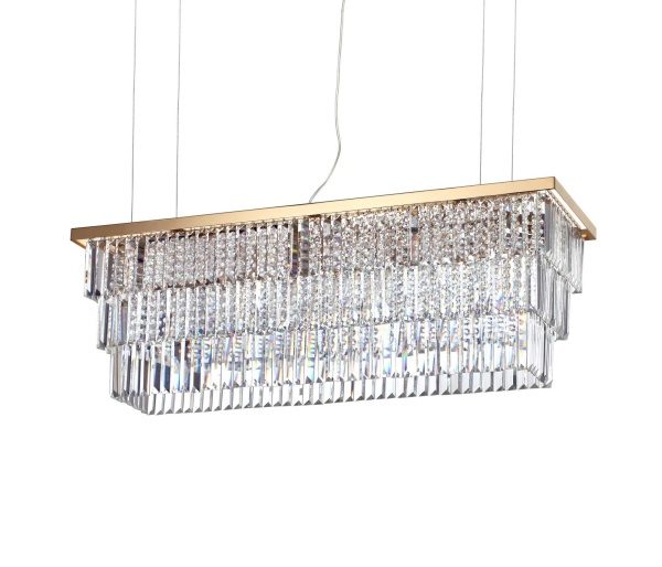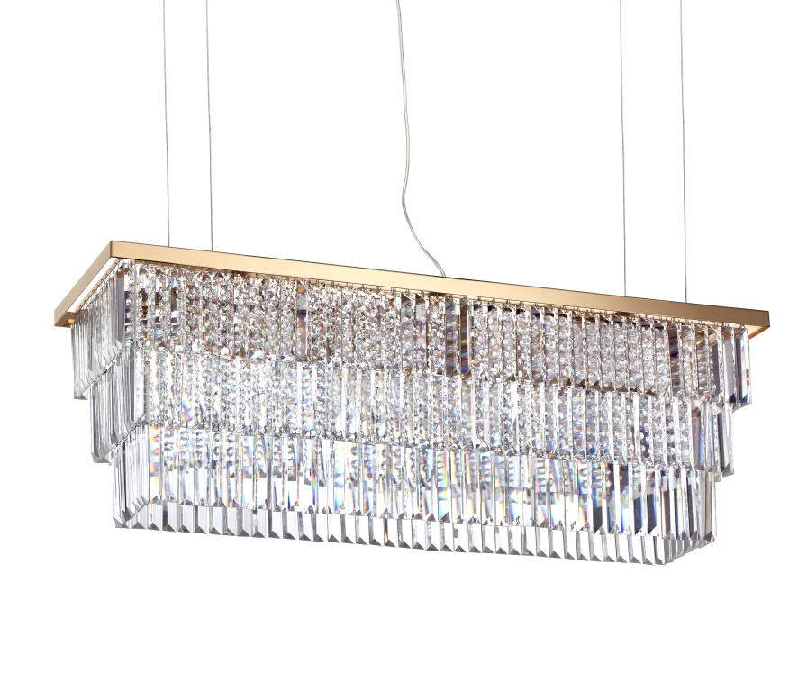 Martinez SP8 kristalliriippuvalaisin on näyttävä ja elegantti valaisin, joka tuo tilaan hotellitason ylellisyyttä. Pitkänomainen muoto ja runsaasti säihkyvät kristallielementit tekevät siitä täydellisen valinnan ruokapöydän, saarekkeen tai edustavan oleskelutilan ylle.