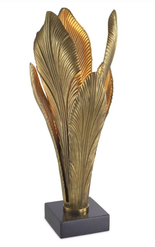 Valaisin on valmistettu kestävästä alumiinista ja messingistä, jotka takaavat pitkäikäisyyden ja laadukkaan tuntuman. Tyylikäs musta graniittijalusta viimeistelee kokonaisuuden, tarjoten samalla vankan ja arvokkaan pohjan, joka korostaa valaisimen veistoksellista muotoa.