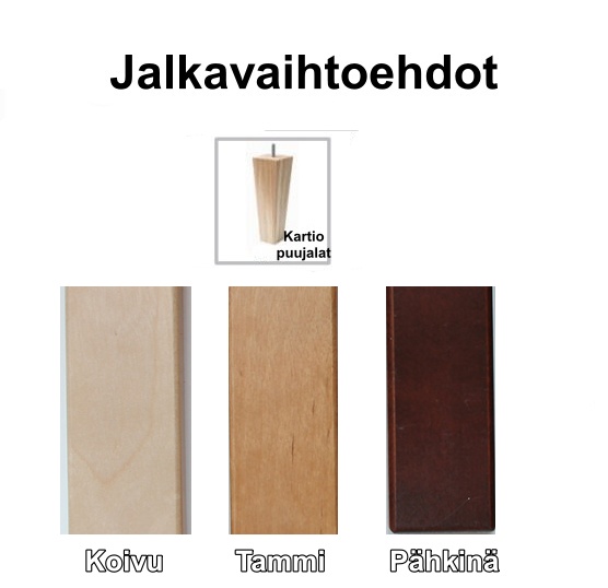 | Leveys | Syvyys | Korkeus | Halkaisija | kannen paksuus | Ruokapöydän koko avattuna 1 jatkolla | Ruokapöydän koko avattuna 2 jatkolla | Nojatuolin mitat | 2 ist sohvan mitat | 3 ist sohvan mitat | Istuinkorkeus | Työtuolin istuinkorkeus | Istuinleveys | Istuinsyvyys | Jalkojen malli | Jalkojen korkeus | Sokkelin korkeus | Selkänojan Leveys | Selkänojan korkeus | Niskatuen korkeus | Käsinojan korkeus lattaiasta | Käsinojan korkeus lattiasta | Käsinojan leveys | Käsinoja mallit | Istuintyyny | Selkätyyny | Muut pehmusteet | Divaanisohvan Jalkapäädyn korkeus | Divaanisohvan pääpäädyn korkeus | Jalkapäädyn korkeus | Pääpäädyn korkeus | Vuodesohvan syvyys avattuna | Vuodekoko | Istuinkorkeus patjan kanssa | Reunan korkeus | Sivulaidan korkeus | Patjapesän korkeus | Patjakoko | Päätyjen koot | Patjan korkeus | Patjan kovuus | Patjan koko jatkettuva | Vapaa tila sängyn alla | Sänkyjen materiaali | Patjojen materiaali | Sijauspatjan materiaali | Kangasverhoilu | Kaapin sisämitat | Laatikon sisämitat | Materiaali | Materiaalit | Mitta | Muut mitat | Muuta | lisätietoja | Väri | Jalkojen väri | Nahkavärit | Puuvärit | Vetimien väri | Vapaa tila tuotteen alla | Tekniset tiedot | Painoraja | Takuu | Saatavuus | Toimitus | Paino | Timantti värit | Jalat tai sokkeli | Kannen koko | Elementit | Ovien malli | Timantti osien materiaali | Hyllyjen materiaali | Vetimet | Valmistusmaa | Taljan mitat | Mattojen Materiaali | Tyynyjen ja torkkujen materiaali | mattojen mitat | Nukan pituus | Mattojen värit | Tyynyjen ja torkkujen värit | Rullamaton leveydet | Varjostimen korkeus: | Varjostimen leveys | Varjostimen syvyys | Valaisimen Materiaali | Valaisimen tiedot | Valaisimen värit | Varjostimen värit | Huomioitavaa | Työtuolien ominaisuudet | Työtuolien verhoilu |