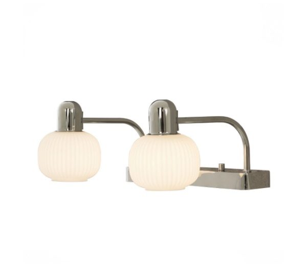 Kaksi maitolasisesta kuvusta suodattaa valon tasaisesti ja häikäisemättömästi, tehden valaisimesta erinomaisen ratkaisun esimerkiksi peilikaapin yläpuolelle. G9-kannat mahdollistavat valaistuksen säätämisen omien tarpeiden mukaan kirkkaasta työvalosta rauhalliseen tunnelmavaloon.