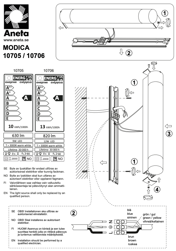 Modica seinävalaisin voidaan asentaa sekä pysty- että vaakasuuntaan, mikä mahdollistaa joustavan sijoittelun eri tiloihin ja tarpeisiin. Integroitu pistorasia lisää käyttömukavuutta esimerkiksi hiustenkuivaajaa tai sähköhammasharjaa varten, tehden valaisimesta erinomaisen ratkaisun arjen käyttöön.