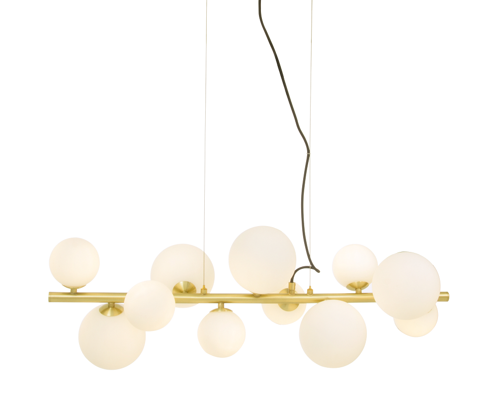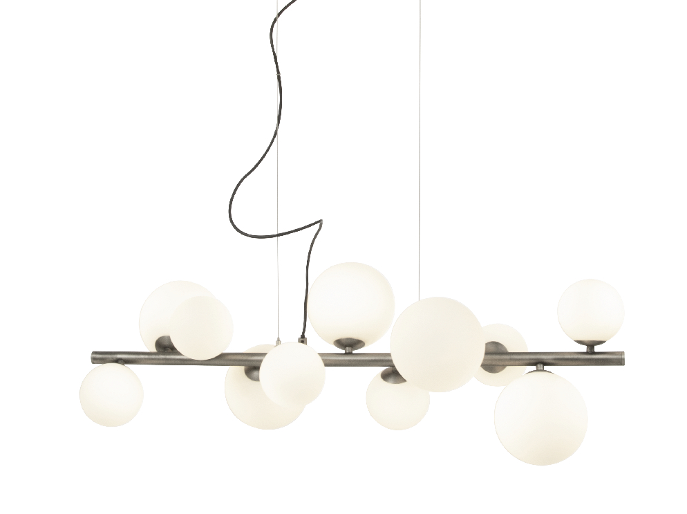 Tyylikäs 11-haarainen Molekyl-11 riippuvalaisin on todellinen sisustuksen katseenvangitsija. Metallirungon ja pallonmuotoisten lasikupujen yhdistelmä luo ilmavan ja arkkitehtonisen kokonaisuuden, joka tuo tilaan modernia persoonallisuutta. Musta, messinki ja tina tarjoavat elegantit värivaihtoehdot erilaisiin sisustustyyleihin.