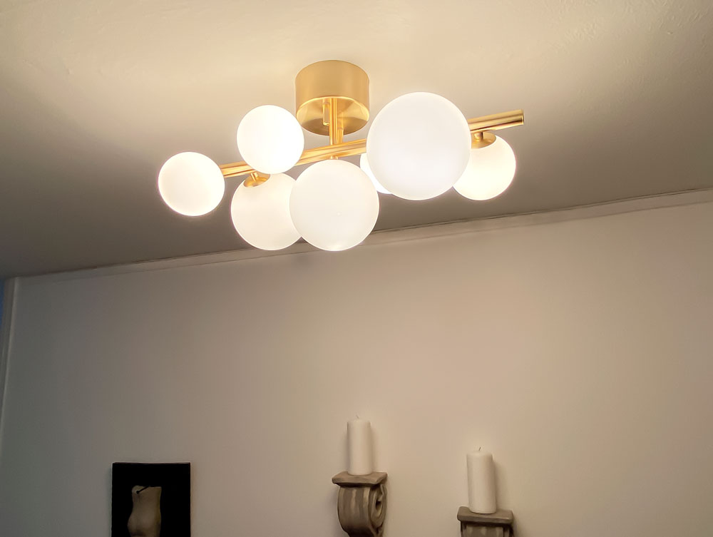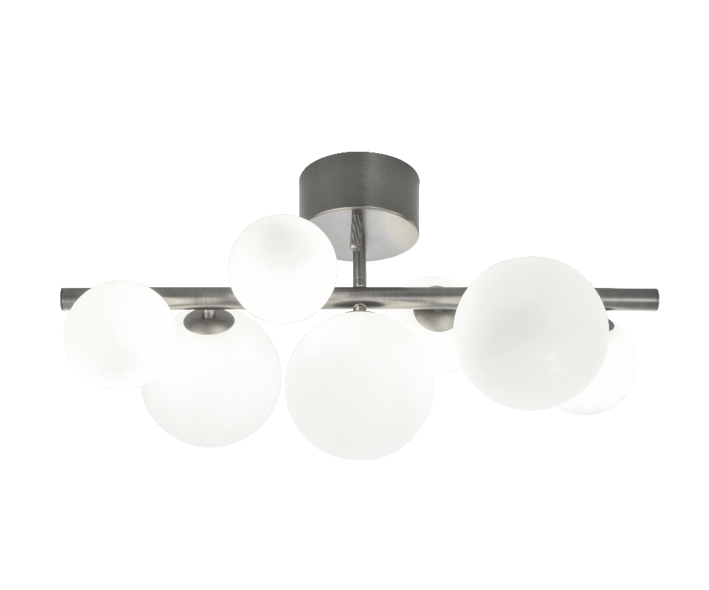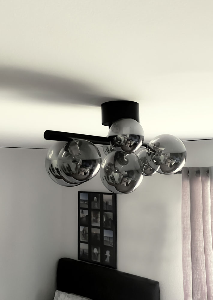 Molekyl-7 kattovalaisin on moderni ja näyttävä kattovalaisin, joka yhdistää pallonmuotoiset lasikuvut ja ajattoman metallimuotoilun tyylikkääksi kokonaisuudeksi. Tasainen valaistus, useat värivaihtoehdot ja persoonallinen design tekevät siitä erinomaisen valinnan moderniin kotiin.