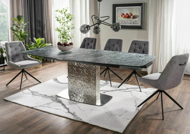 Moncler ruokapöytä tarjoaa modernin Verde Alpi -marmorikuvioidun designin, joustavan jatkettavuuden ja kestävän rakenteen, jotka tekevät siitä täydellisen valinnan arkeen ja juhlaan. Se yhdistää ainutlaatuisen tyylin ja laadukkaat materiaalit tuoden sisustukseen näyttävyyttä ja toimivuutta.