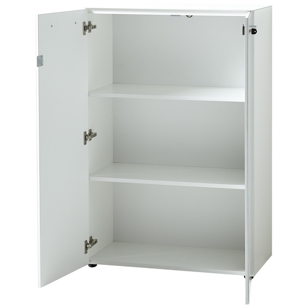 Kalustelevy melamiinihartsipinnoitteella, tukevat ABS-kanttaukset ja kromiset vetimet varmistavat kaapin pitkäikäisen ja huolettoman käytön. Kaappi toimitetaan osina, mutta on saatavilla myös koottuna lisähinnasta, mikä tekee asentamisesta vaivatonta.