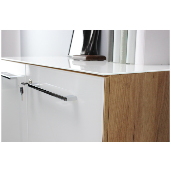 | 80 cm | 37 cm | 120 cm | cm | cm | cm | cm | cm | cm | cm | cm | cm | cm | cm | cm | cm | cm | cm | cm | cm | cm | cm | cm | cm | cm | cm | cm | cm | ABS reunat, Edusta ja kansi iskunkestävää lasia, Kalustelevy, Melamiinihartsipinoite | Tammi/valkoinen, Valkoinen | cm | Korkeussäädettävät hyllyt, Lukolliset ovet | Saatavana kasattuna - kasaus tilataan kassalla, Tilaustuote | Toimitus osina | 45.47 kg | Saksa | cm | cm | cm |