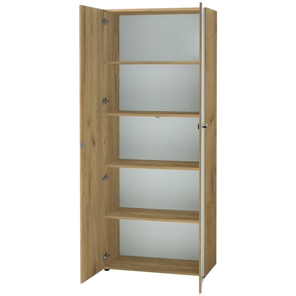 | 80 cm | 37 cm | 196 cm | cm | cm | cm | cm | cm | cm | cm | cm | cm | cm | cm | cm | cm | cm | cm | cm | cm | cm | cm | cm | cm | cm | cm | cm | cm | ABS reunat, Edusta ja kansi iskunkestävää lasia, Kalustelevy, Melamiinihartsipinoite, Vedin metallia | Tammi/valkoinen, Valkoinen | cm | Korkeussäädettävät hyllyt, Lukolliset ovet | Saatavana kasattuna - kasaus tilataan kassalla, Tilaustuote | Toimitus osina | 62.58 kg | Saksa | cm | cm | cm |