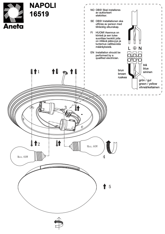 Napoli kattovalaisin suodattaa valon kauniisti alabasterlasin läpi, luoden miellyttävän ja häikäisemättömän yleisvalon. Se sopii erinomaisesti olohuoneeseen, eteiseen, makuuhuoneeseen tai kylpyhuoneeseen, jossa halutaan rauhallinen mutta tehokas valaistus.