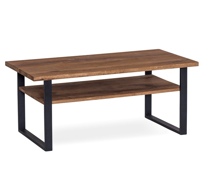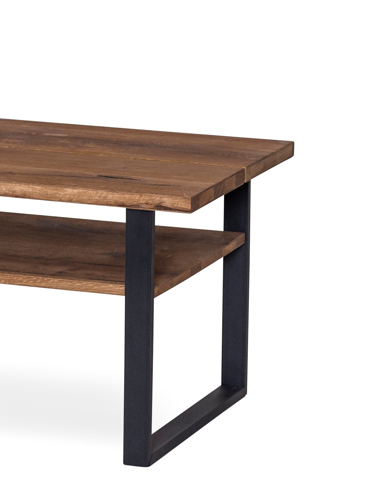 Sohvapöydässä on kätevä alahylly, joka tarjoaa lisäsäilytystilaa lehdille, kirjoille tai kaukosäätimille ja pitää pöytätason siistinä. Mustat metallijalat luovat tyylikkään kontrastin öljytylle tammipinnalle ja tuovat kokonaisuuteen modernia, teollishenkistä särmää.
