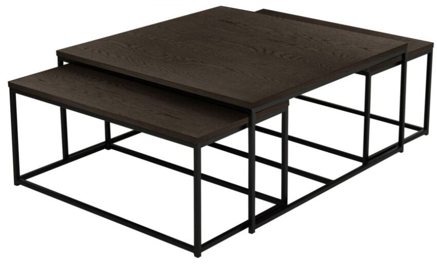 Natalie-sohvapöytäsetti tarjoaa käytännöllistä ja modernia sisustusta kolmessa koossa. Kaksi pienempää pöytää mahtuu kätevästi ison pöydän alle, mikä säästää tilaa ja antaa joustavia käyttömahdollisuuksia. Valitse kolmesta elegantista värivaihtoehdosta – vaalea tammi, tummanruskea tai musta, jotka täydentävät mustaa metallirunkoa ja tuovat modernia ilmettä mihin tahansa tilaan. Kestävä tammiviilusta valmistettu pöytälevy ja tukeva metallirunko takaavat pitkäikäisen käytön, ja kokonaispaino 39 kg takaa vakaan rakenteen.