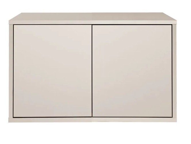 Kaksi push-to-open ovea avautuvat kevyesti painamalla, ja niiden takana olevat säädettävät hyllyt tarjoavat runsaasti säilytystilaa pienestä koostaan huolimatta. Selkeälinjainen muotoilu ja huolellinen viimeistely tekevät tasosta katseenvangitsijan kodin eri tiloihin.