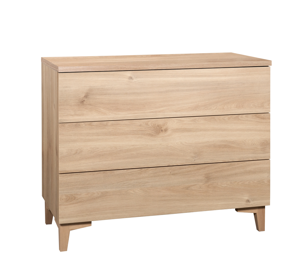 Lipaston runko ja etusarjat on valmistettu kestävästä kalustelevystä, joka takaa pitkän käyttöiän ja vankan rakenteen. 13 cm korkeat massiivipuiset jalat tuovat lipastolle ilmavan ja elegantin ilmeen sekä helpottavat puhtaanapitoa sen alta. Jalkoja on saatavana joko valkoisena tai tammisena.
