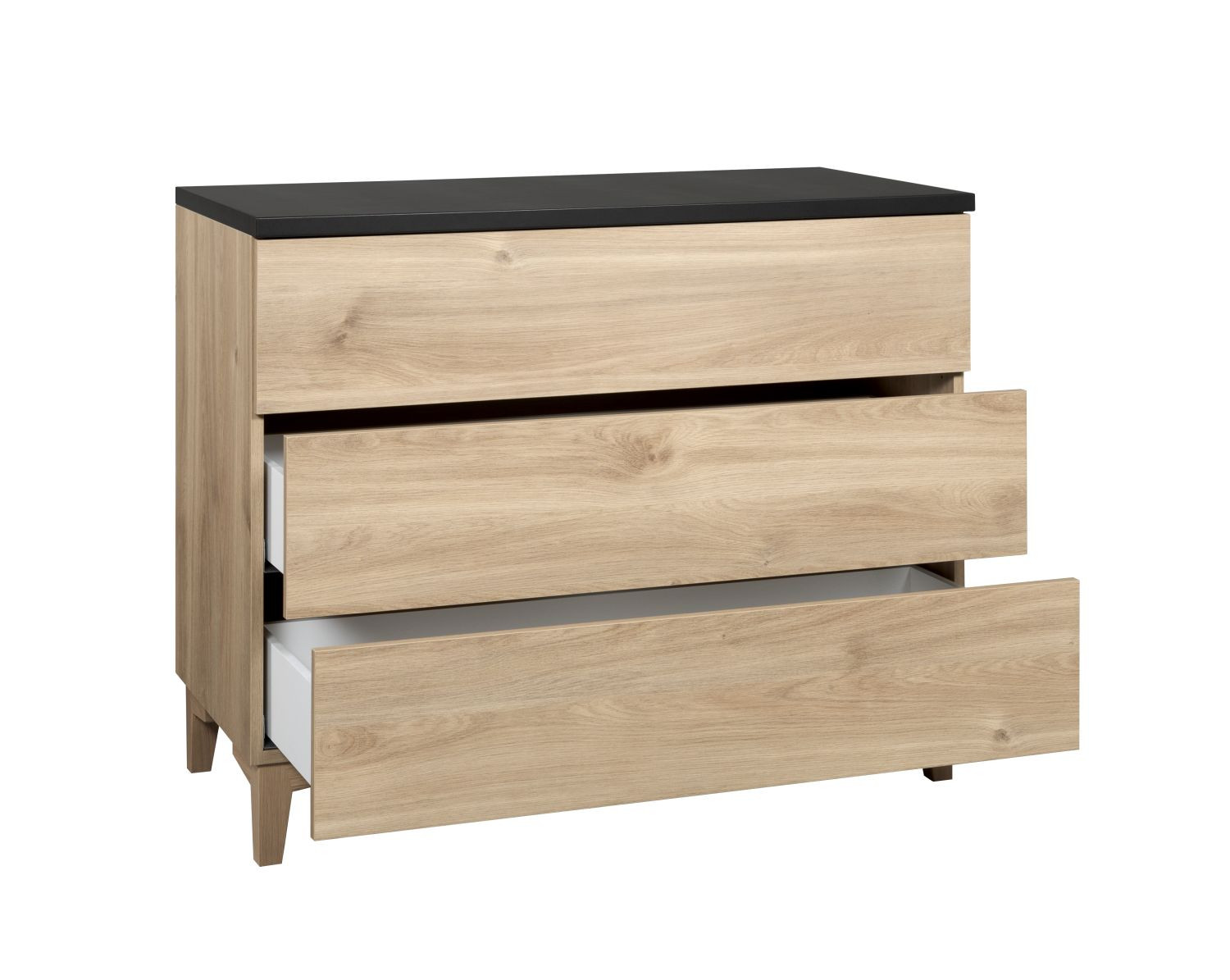 Kolme tilavaa laatikkoa on varustettu push-open mekanismilla, joka tekee käytöstä sulavaa ja vetimettömästä pinnasta visuaalisesti kevyen ja modernin. Tämä älykäs ratkaisu yhdistää esteettisyyden ja käyttömukavuuden täydellisessä tasapainossa.