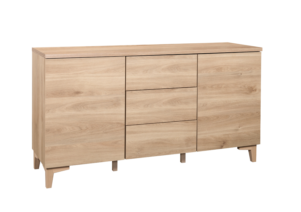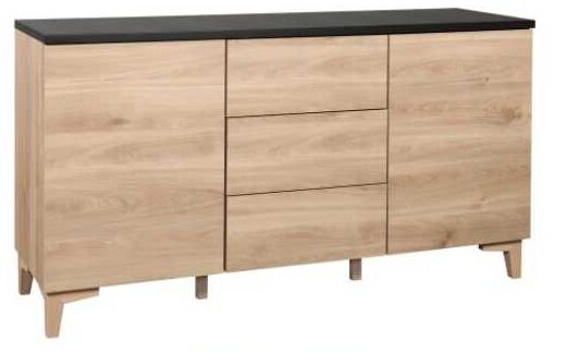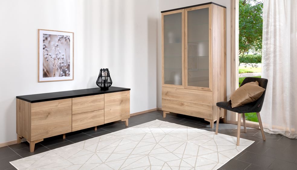 Rakenne on tehty vahvasta kalustelevystä, ja kannen voit valita joko hunaja tammesta tai mustasta tai valkoisesta maalatusta MDF-levystä – molemmat vaihtoehdot tarjoavat tyylikkyyttä ja pitkäikäisyyttä. 13 cm korkeat massiivipuiset jalat antavat kaapille kevyen, ilmavan ilmeen ja tekevät sen sijoittamisesta helppoa eri tiloihin. Jalat voit valita joko tammen tai valkoisen värisenä