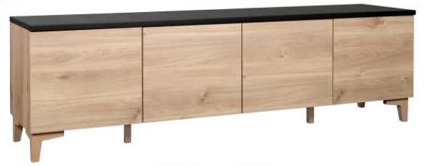 Runko ja etusarjat on valmistettu kestävästä kalustelevystä, ja kannen vaihtoehdoiksi voit valita tammen sävyn tai maalatun MDF-levyn mustana tai valkoisena. 13 cm korkeat massiivipuiset jalat joko tammen tai valkoisen väriset antavat tv-tasolle kevyen ja ilmavan vaikutelman, tehden siitä näyttävän mutta hillityn osan sisustusta.
