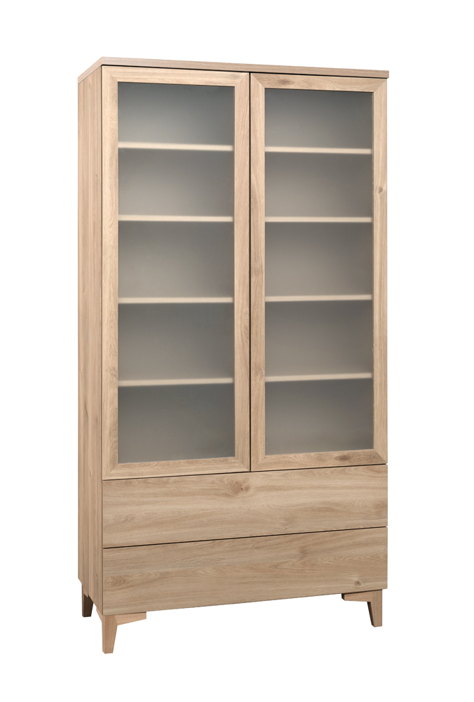 Vitriinin kaksi lasiovea, lasi tai levyhyllyt ja kaksi laatikkoa push-open mekanismilla tarjoavat runsaasti tilaa esineiden säilyttämiseen ja esillepanoon. Käyttömukavuutta lisää moderni vetimetön mekanismi, joka tekee avaamisesta kevyttä ja sulavaa.