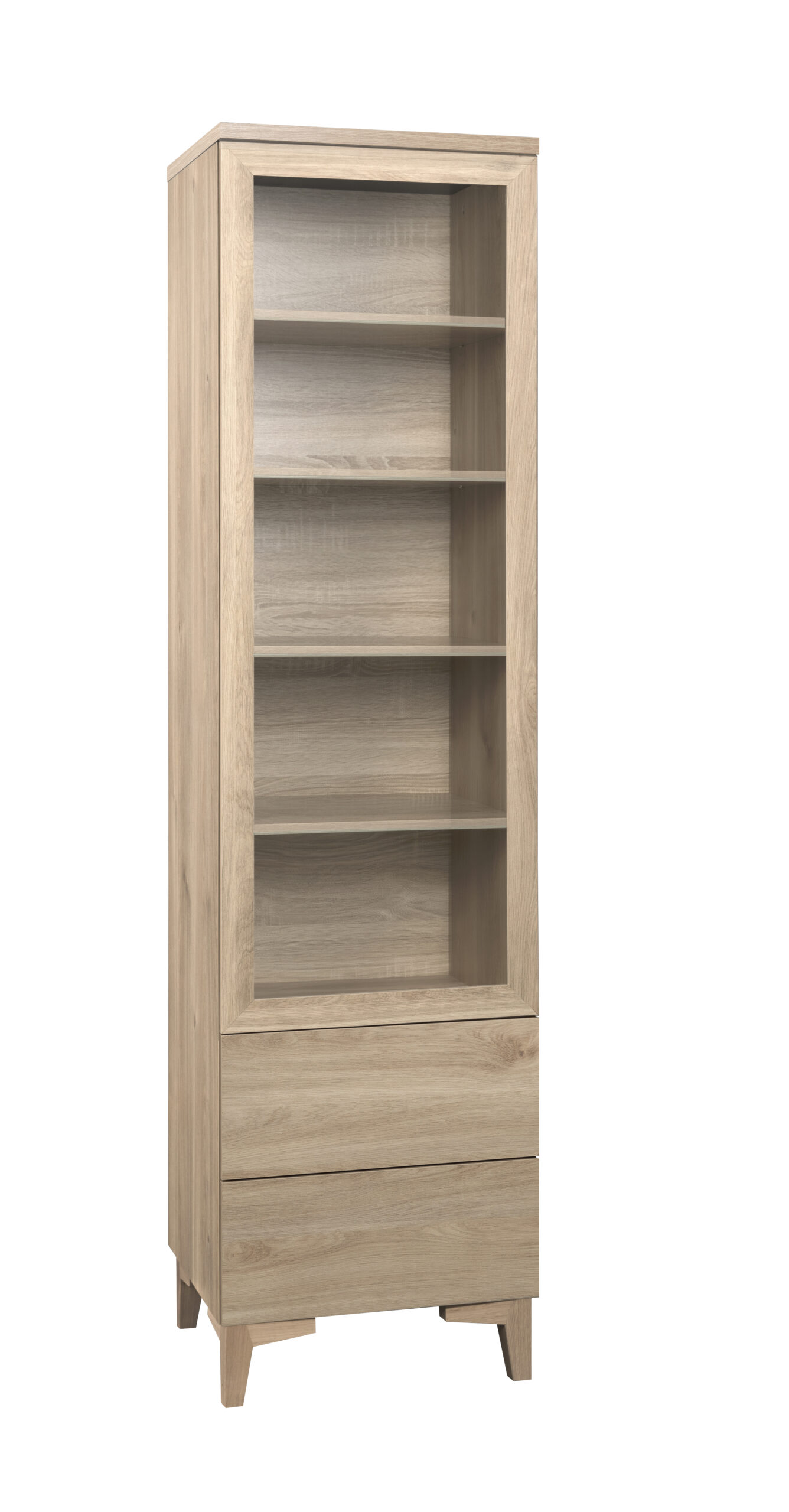 Vitriini on valmistettu korkealaatuisista materiaaleista, jotka takaavat pitkän käyttöiän. Karkaistut lasiovet ja massivipuiset jalat tuovat kokonaisuuteen vakautta ja hienostuneisuutta, kun taas huolellinen viimeistely korostaa kalusteen premium-tason laatua. 13 cm korkeat massiivipuiset jalat antavat kaapille kevyen, ilmavan ilmeen ja tekevät sen sijoittamisesta helppoa eri tiloihin. Jalat voit valita joko tammen tai valkoisen värisenä