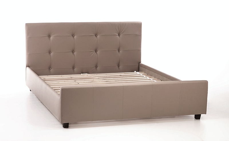 Toimitukseen sisältyy sälepohja, jotka varmistavat tasaisen ja tukevan pohjan. Nööpi sängyssä on pääty jossa on nappeja, Saatavana joko kankaalla tai nahka/keinonahalla verhoiltuna