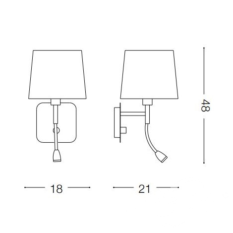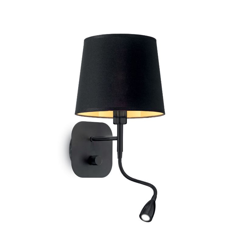 | 18 cm | 21 cm | 48 cm | cm | cm | cm | cm | cm | cm | cm | cm | cm | cm | cm | cm | cm | cm | cm | cm | cm | cm | cm | cm | cm | cm | cm | cm | cm | Lukuvalo: LED 1,5W / 100lm | cm | Tilaustuote | 0.6 kg | 17 cm | cm | cm | Kangasverhoiltu varjostin, Metalli, Muovi | 3000K, Polttimo: E14, polttimon määrä 1 kpl, Polttimo ei sisälly hintaan, Teho: 40W, Seinäkiinnitys | Musta |