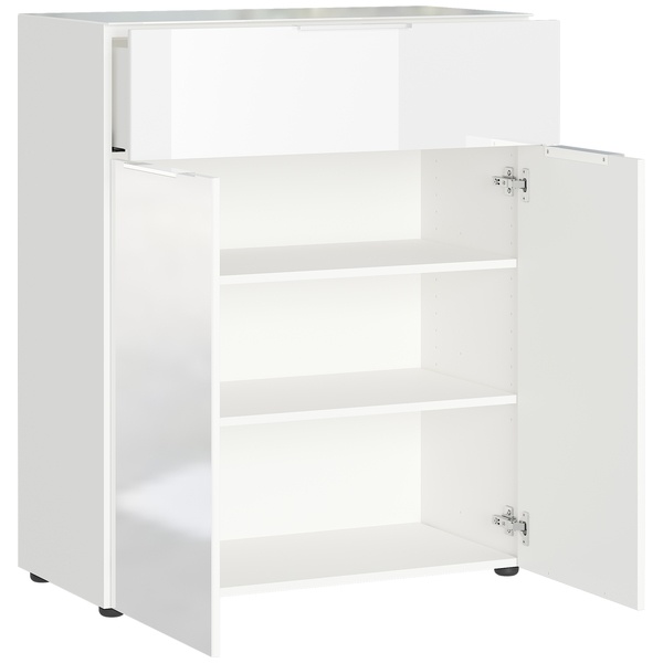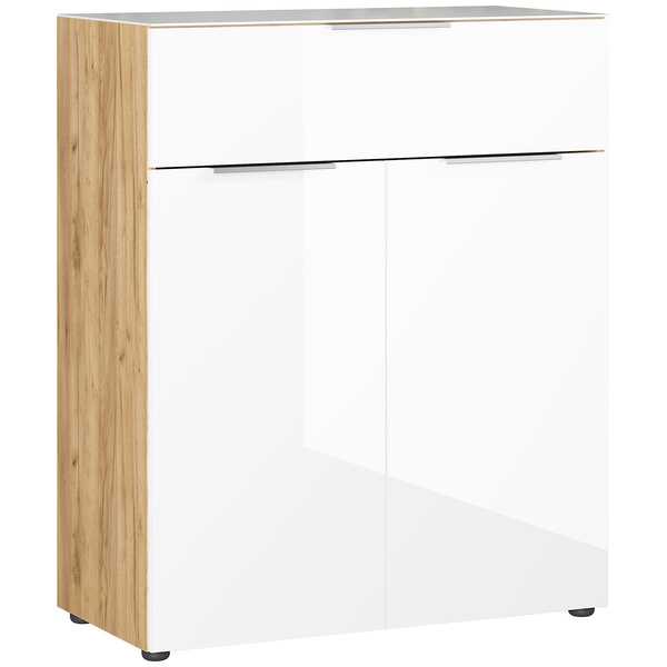 Yksi vetolaatikko ja kaksiovinen alakaappi, jossa on kaksi säädettävää välihyllyä, tarjoavat runsaasti tilaa arjen tavaroille ja auttavat pitämään kodin siistinä. Käytännöllinen rakenne tekee lipastosta monipuolisen ratkaisun eri huoneisiin.