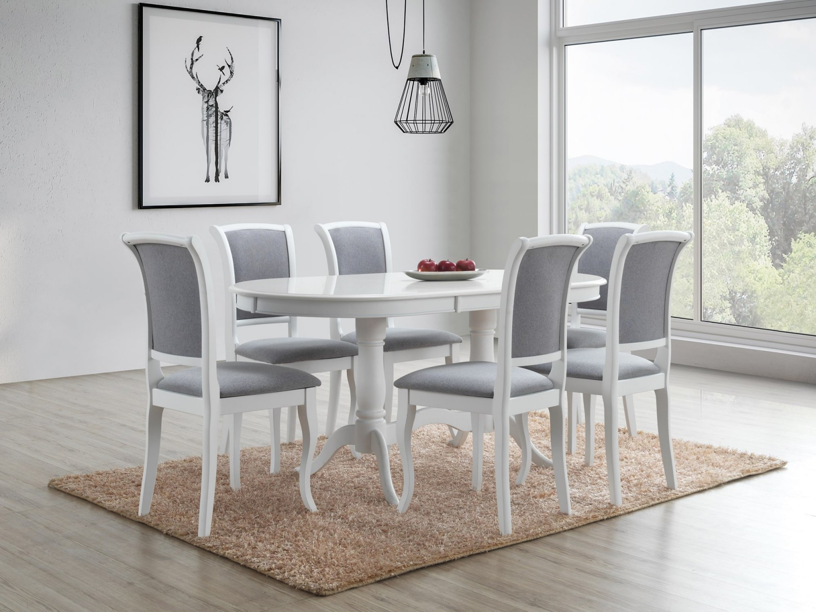 Valkoinen pöytä yhdistettynä kauniisiin yksityiskohtiin jaloissa ja rungossa luo raikkaan ja ajattoman ilmeen, joka sopii saumattomasti moderniin, klassiseen tai skandinaaviseen sisustukseen. Sen harmoninen muotoilu tekee ruokailuryhmästä näyttävän keskipisteen kodin yhteisiin tiloihin.