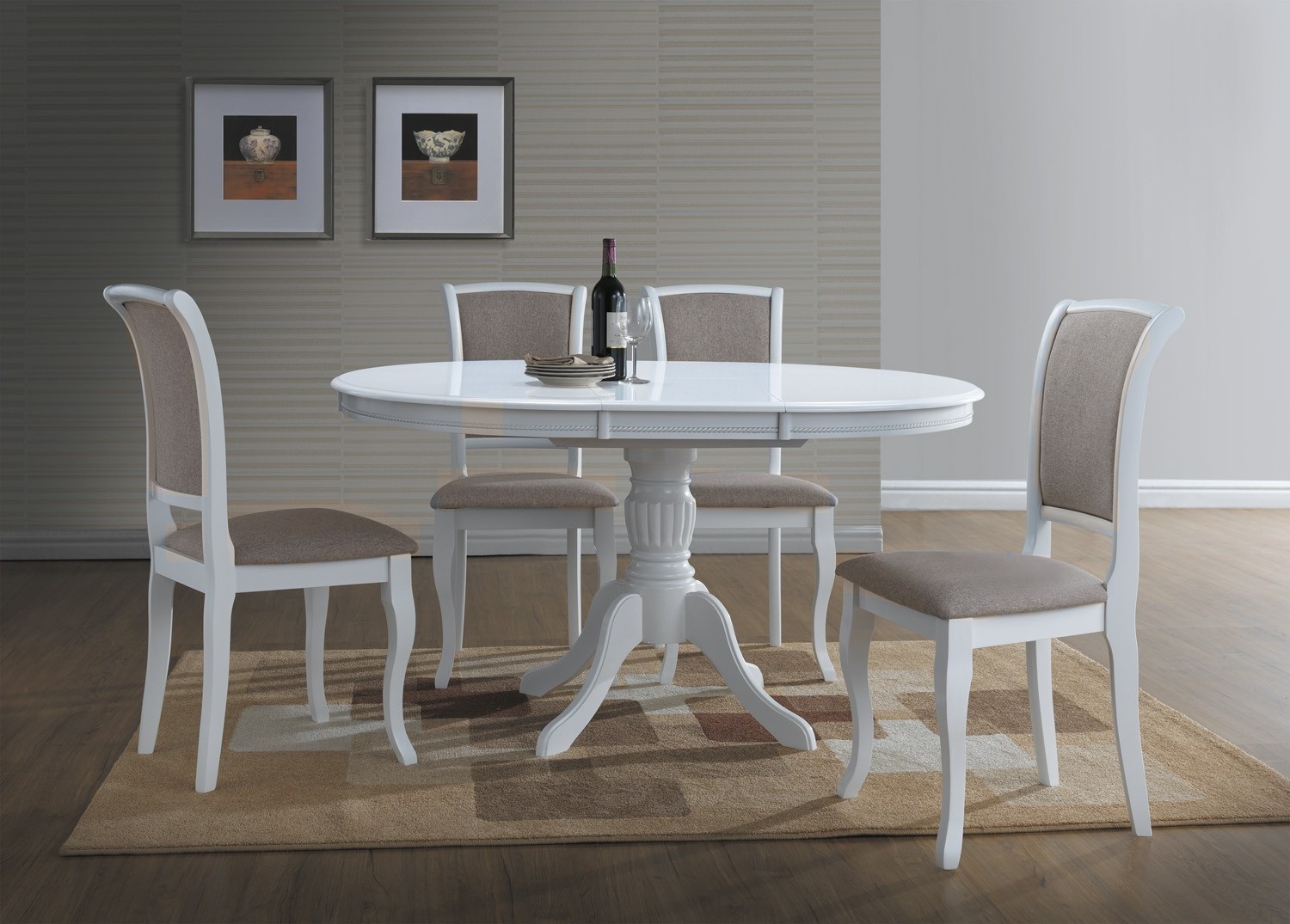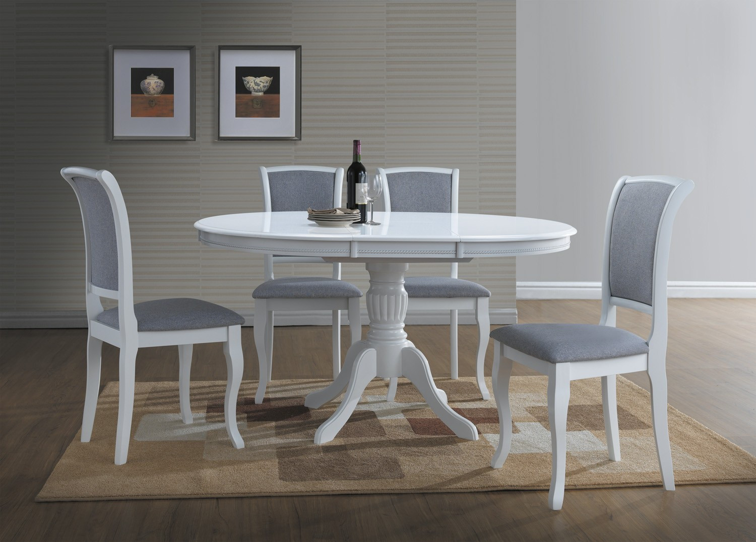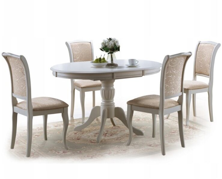 Olivia pyöreä ruokailuryhmä - jatkettava -Valkoinen