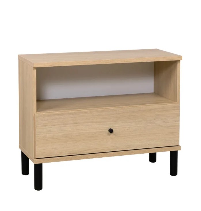 Kotimaisena laatutuotteena Olki-lipasto on tehty kestämään aikaa ja käyttöä. Sen leveys on 79 cm, ja se tarjoaa runsaasti säilytystilaa yhden vetolaatikon ja avohyllyn avulla. Siron rakenteen ja korkean mustan jalan ansiosta taso näyttää kevyeltä ja tyylikkäältä, vaikka sen säilytyskapasiteetti yllättää positiivisesti. Tutustu muihin saman sarjan tuotteisiin