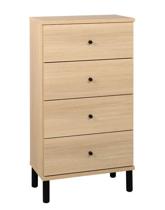 Kotimaisena laatutuotteena Olki-lipasto on tehty kestämään aikaa ja käyttöä. Sen leveys on 59,8 cm, ja se tarjoaa runsaasti säilytystilaa neljän vetolaatikon avulla. Siron rakenteen ja korkean mustan jalan ansiosta taso näyttää kevyeltä ja tyylikkäältä, vaikka sen säilytyskapasiteetti yllättää positiivisesti. Tutustu muihin saman sarjan tuotteisiin