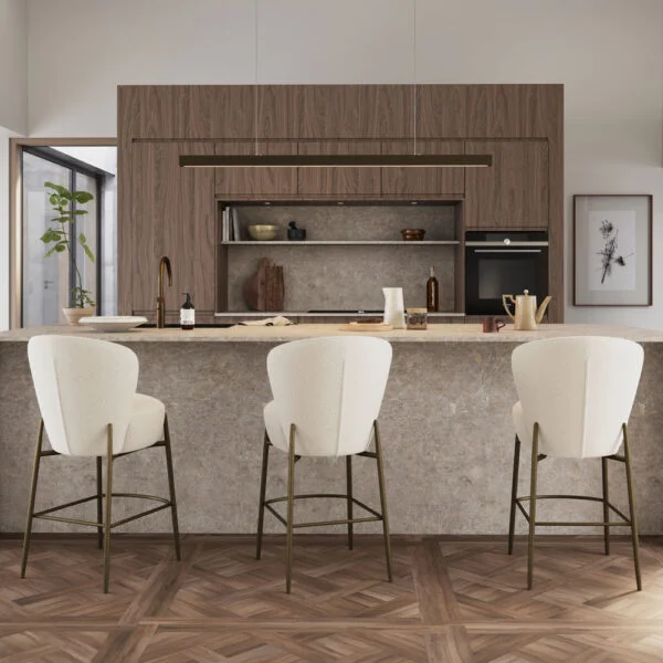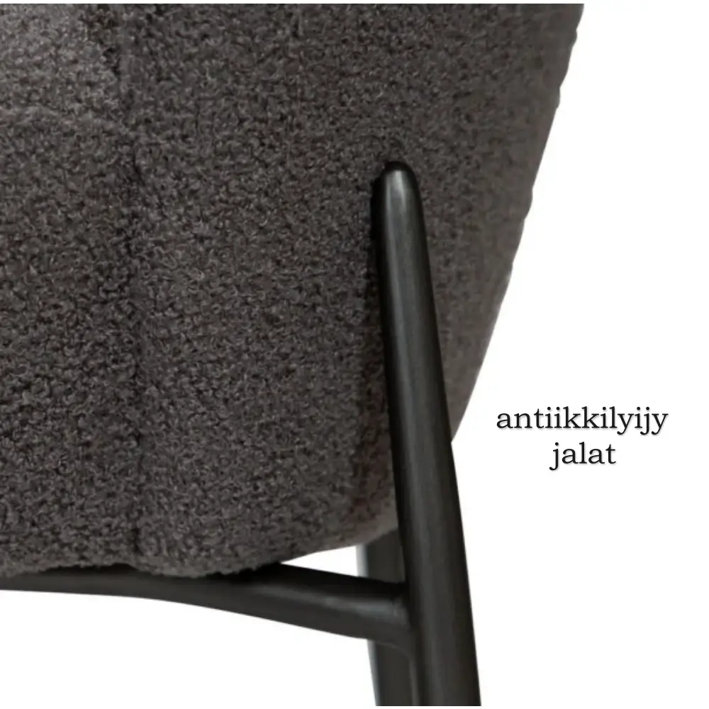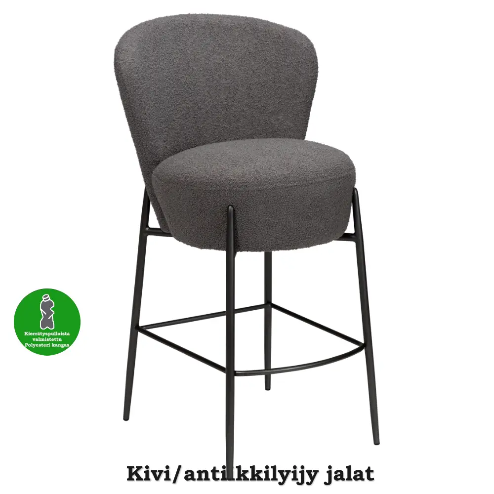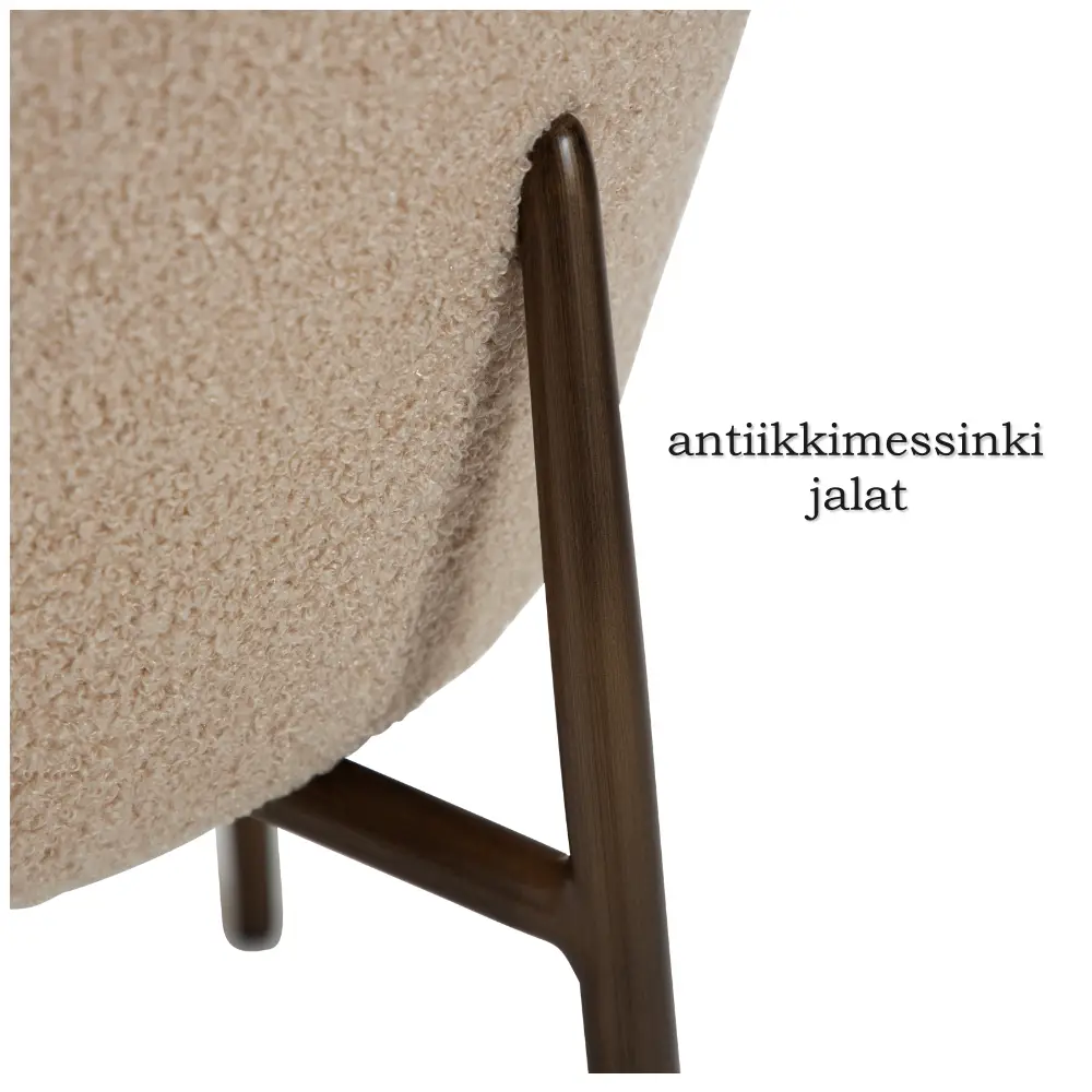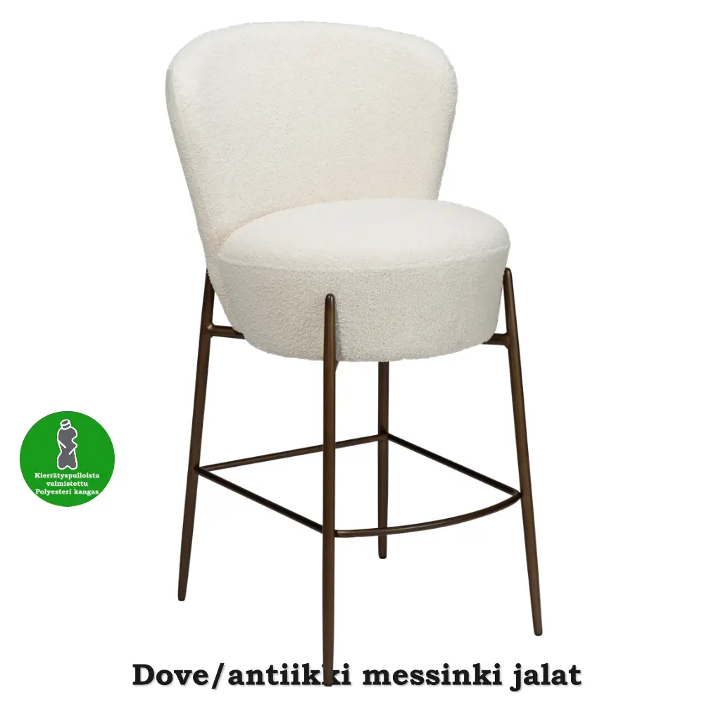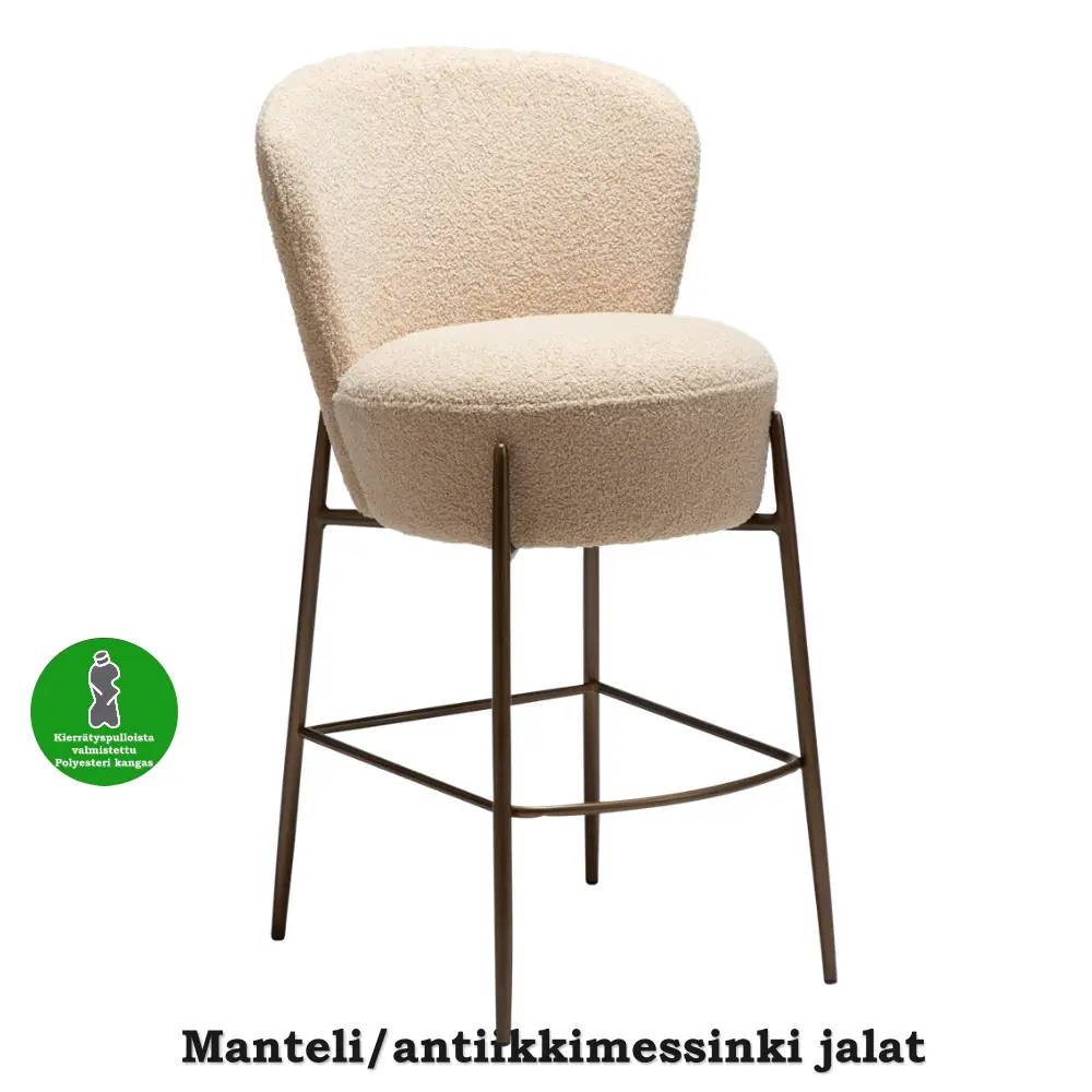 Tuolin istuin on valmistettu kestävästä vanerista ja verhoiltu pehmeällä bouclé-kankaalla, joka luo ylellisen ja kodikkaan tunnun. Pulverimaalatut metallijalat takaavat tukevuuden ja pitkäikäisen käytön. Orbit-baarituoli painaa 7 kg ja on FSC-sertifioitu, mikä korostaa vastuullista materiaalivalintaa.