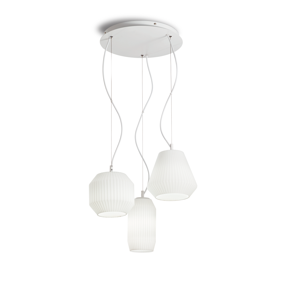 Moderni metallirunkoinen Origami SP riippuvalaisin on näyttävä yhdistelmä selkeää muotokieltä ja hienostunutta yksityiskohtaisuutta. Valkoinen puhallettu lasikupu ja tyylikäs kohokuviointi luovat veistoksellisen ilmeen, joka sopii täydellisesti ruokailutilaan, olohuoneeseen tai korkeaan eteistilaan.