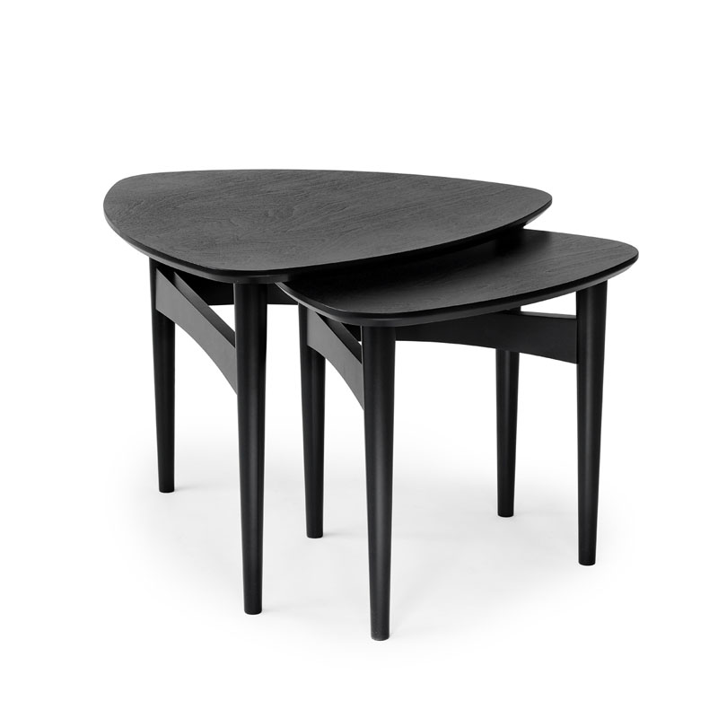 Orust sarjapöytä on tyylikäs ja kätevä valinta, kun tarvitset tilapäisesti lisää sohvapöytätilaa tai haluat muunneltavuutta arkeen. Kolmion muotoinen kansi tuo sisustukseen modernia ilmettä ja tekee pöydistä mielenkiintoisen katseenvangitsijan.