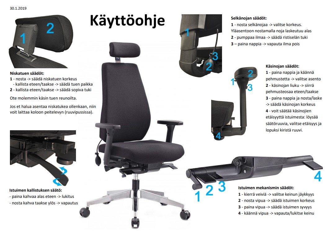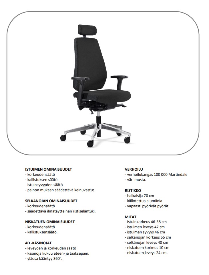 Ergonominen huippuluokan istuin vaativaan työskentelyyn