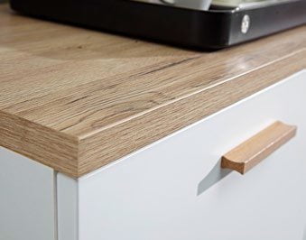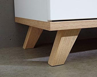 Lämpömuovatusta MDF:stä valmistettu runko, struktuurikuvioinen pinta ja ABS-reunanauhat varmistavat pitkän käyttöiän, kun taas hidastimet ovissa ja itsestään sulkeutuvat laatikot tuovat arkeen hiljaisuutta ja sujuvuutta. Massiivipuiset jalat ja vetimet sekä korkeussäädettävät hyllyt viimeistelevät pöydän tyylikkään ja huolitellun kokonaisuuden.