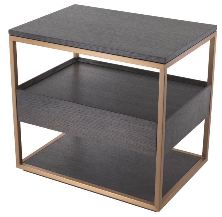 Parker-yöpöytä yhdistää elegantin mokkaviilun, messinkisomisteiden ylellisyyden ja käytännöllisen säilytyksen, tehden siitä täydellisen valinnan makuuhuoneeseen tai monipuoliseksi lisäpöydäksi muihin tiloihin.