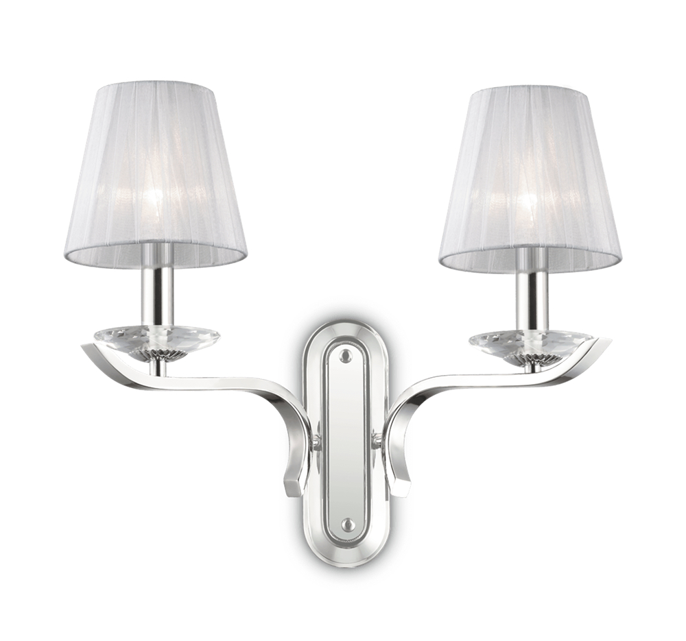 Tyylikäs metallirunkoinen Pegaso AP2 seinävalaisin on hienostunut design-valaisin, jossa klassinen eleganssi kohtaa modernin muotokielen. Kristallimansetilla viimeistelty rakenne ja Organza-kankaalla päällystetty varjostin luovat ylellisen ja pehmeän ilmeen, joka sopii erinomaisesti olohuoneeseen, makuuhuoneeseen tai edustavaan käytävätilaan.