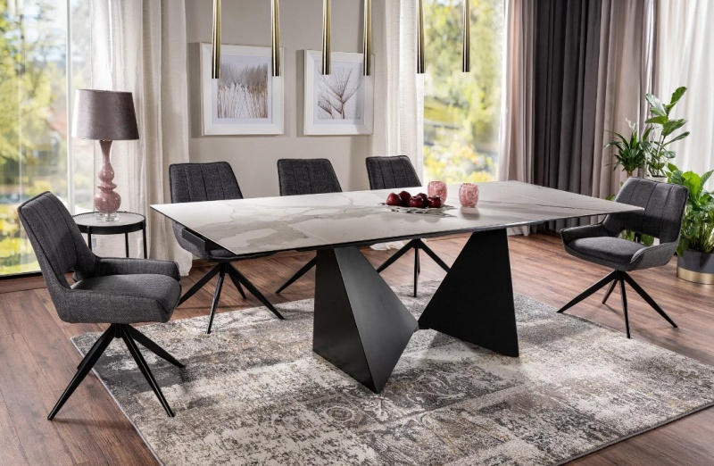 Peterson ruokailuryhmä tarjoaa modernin marmorikuvioidun designin, joustavan jatkettavuuden ja mukavat Tello-tuolit, jotka tekevät siitä täydellisen valinnan arkeen ja juhlaan. Sen tyylikäs kokonaisuus tuo ruokailutilaan sekä näyttävyyttä että käytännöllistä toimivuutta.
