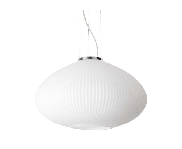 Tyylikäs metallirunkoinen Plisse SP1 riippuvalaisin on elegantti ja kevyt valaisin, jossa klassinen muotokieli kohtaa modernin viimeistelyn. Valkoinen happoetsattu lasivarjostin kohokuvioinnilla tuo valaisimeen hienostunutta tekstuuria ja tekee siitä näyttävän mutta rauhallisen elementin ruokailutilaan, olohuoneeseen tai makuuhuoneeseen.