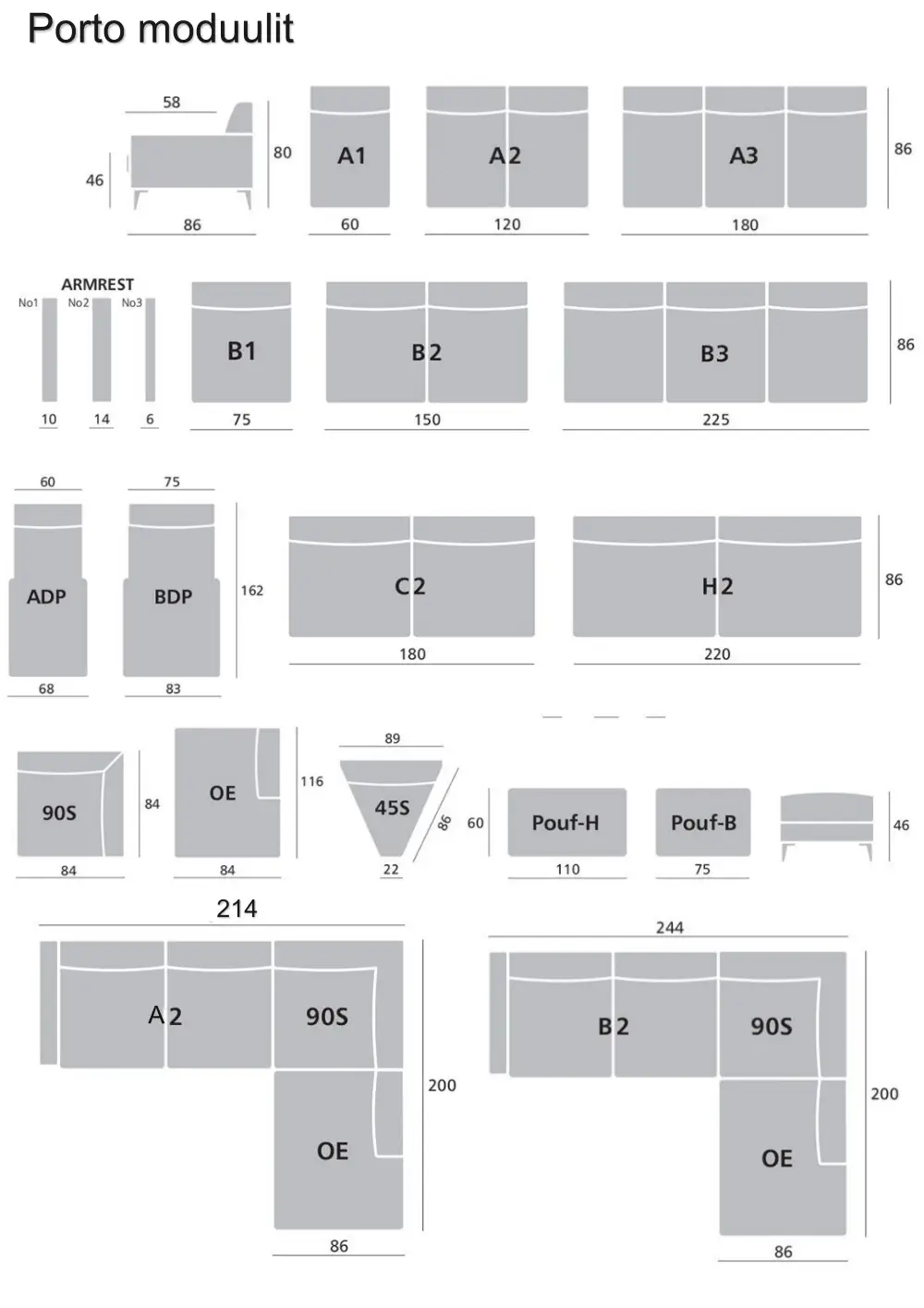 Porto on upea ja trendikäs sohva, jonka ulkonäköön voit vaikuttaa valitsemalla sinulle sopivat vaihtoehdot. Upea Porto on moduulisohva, jonka eri osien ansiosta sohva on muokattavissa juuri sinun tarpeisiisi sopivaksi. Rakenna omasi, tai valitse valmiista kokoonpanoista!