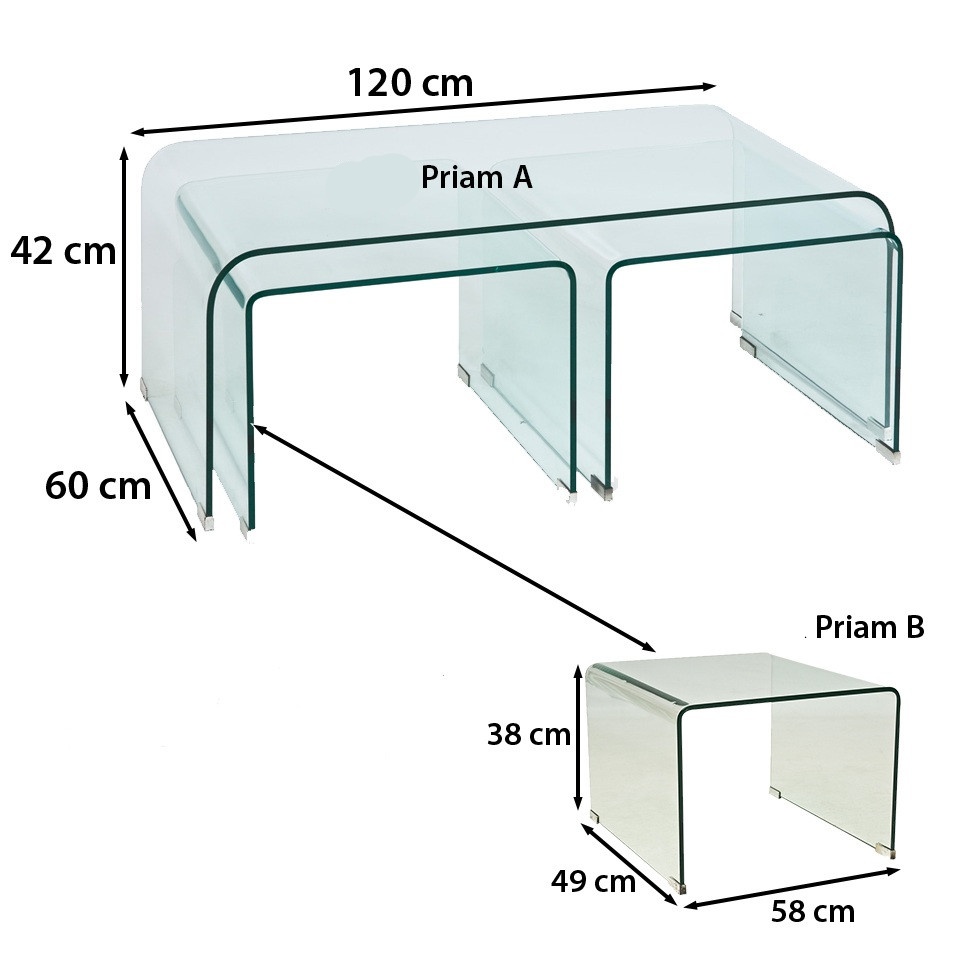 Leveys 120 cm, syvyys 60 cm ja korkeus 42 cm tekevät Priam A -sohvapöydästä täydellisen vaihtoehdon niin pieniin kuin avariin olohuoneisiin. Se sopii erinomaisesti lasipintaisten sohvapöytien ystäville ja tarjoaa käytännöllisen sekä visuaalisesti kevyen ratkaisun sisustukseen.