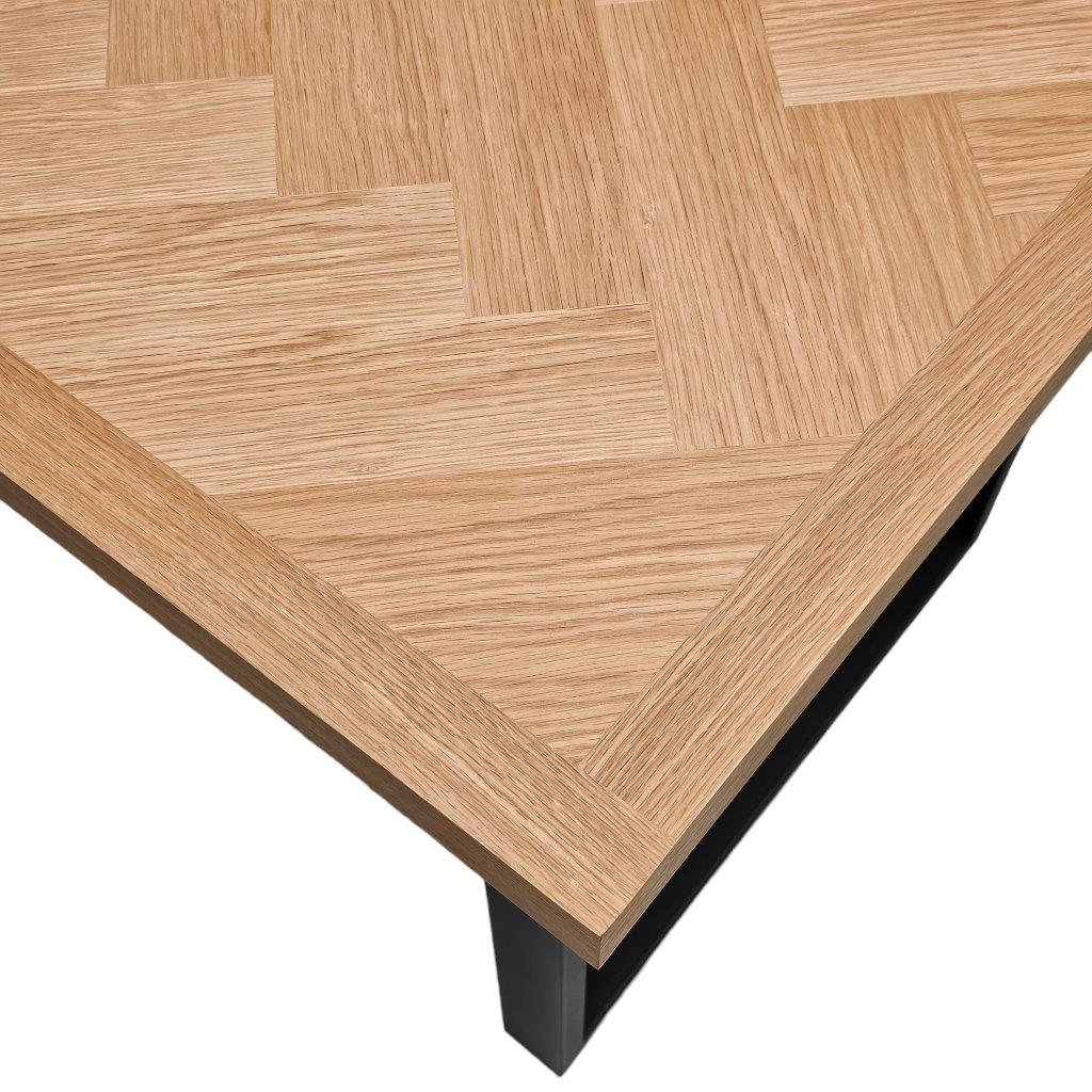 Pöydän kansi on valmistettu korkealaatuisesta MDF-levystä, joka on viimeistelty upealla puuviilulla – yhdistelmä, joka tarjoaa aidon puun ulkonäön ja kestävän pinnan arjen käyttöön. Pulverimaalattu metallijalka antaa pöydälle tukevuuden ja lisää modernia ilmettä, tehden siitä sekä tyylikkään että käytännöllisen valinnan.